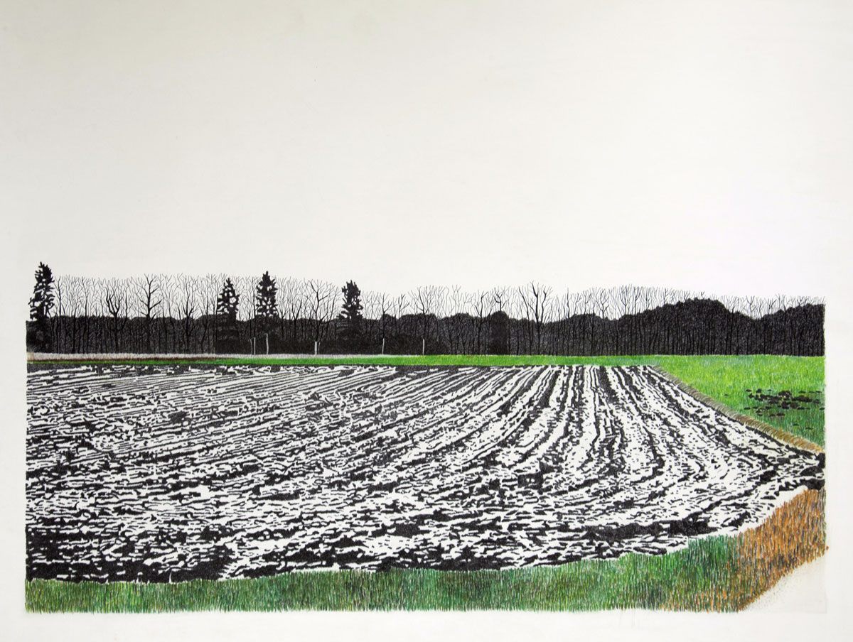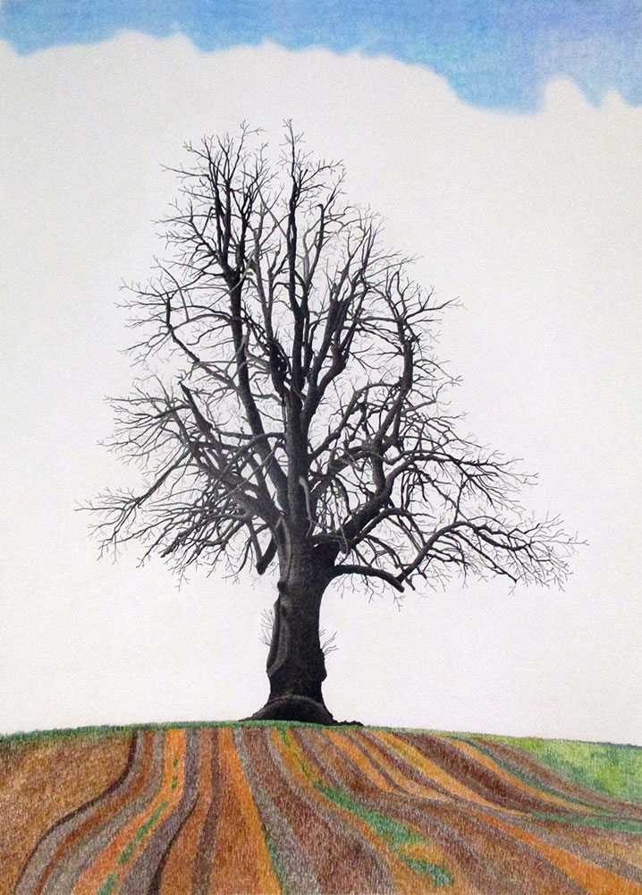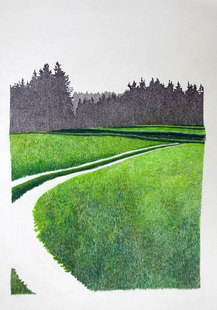 | Waldviertel, 2011 Rapidograph und Pastellkreide auf Papier, 70 x 50 cm 850,- € |