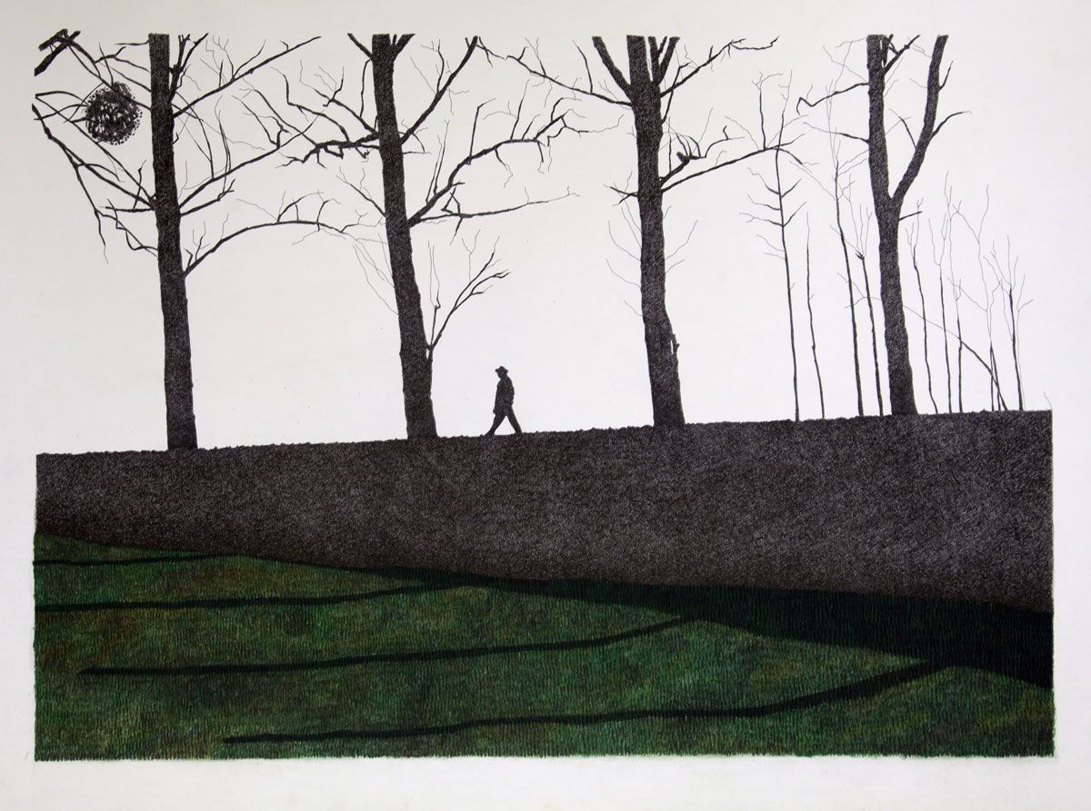 | Spaziergänger, 2011 Rapidograph und Pastellkreide auf Papier, 70 x 50 cm 850,- € |