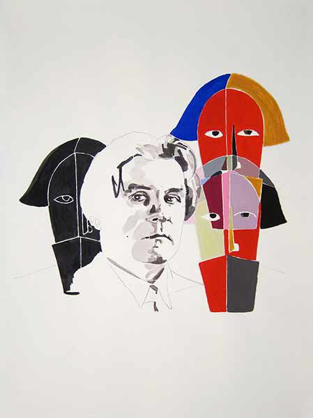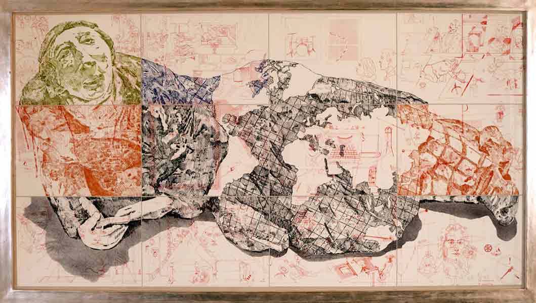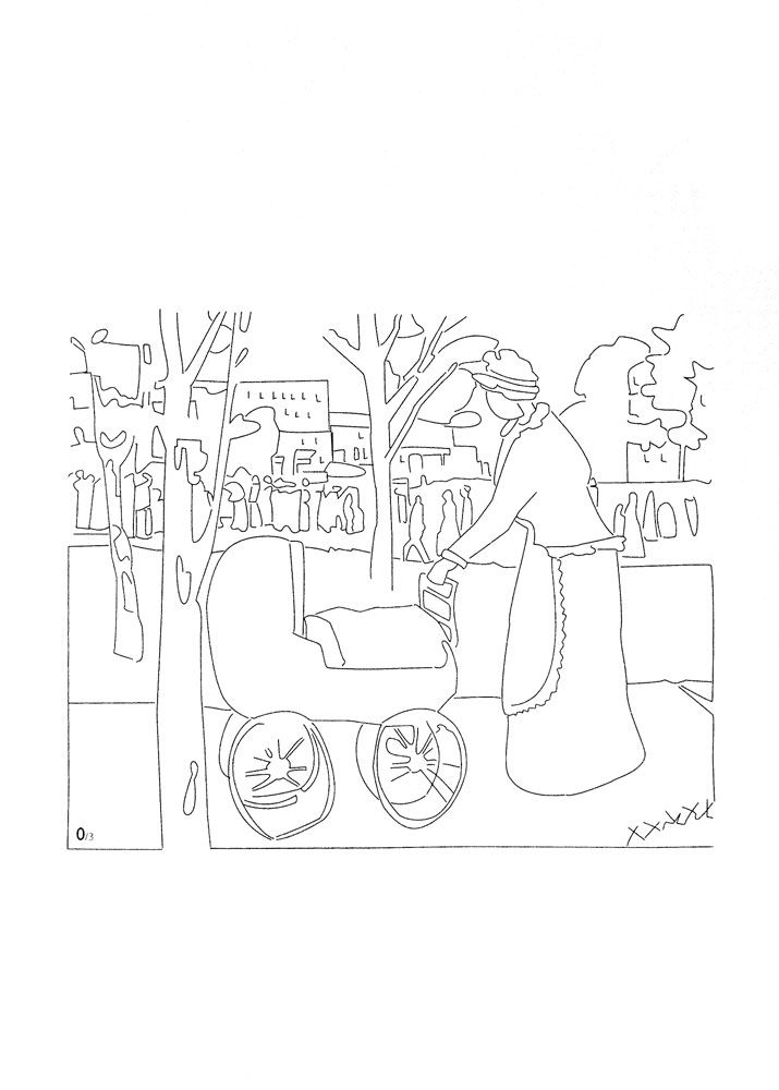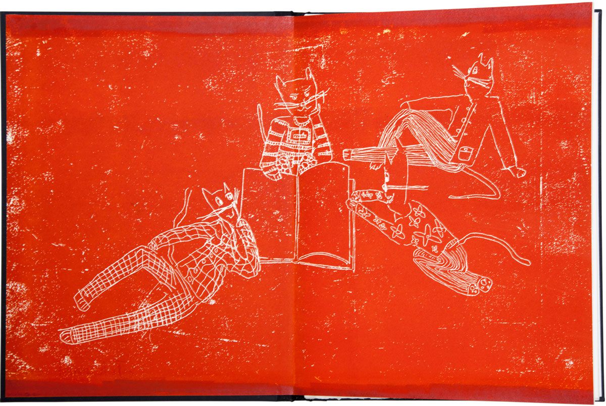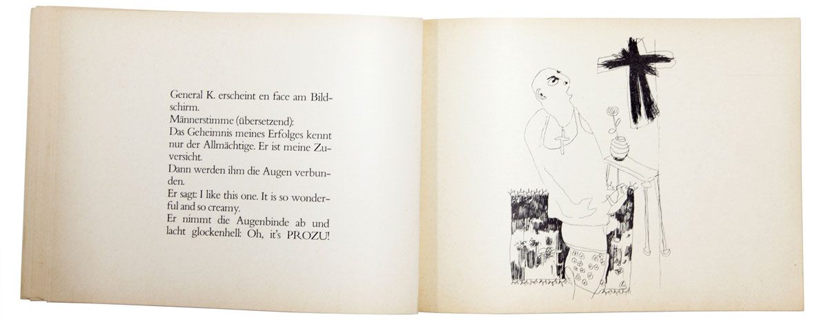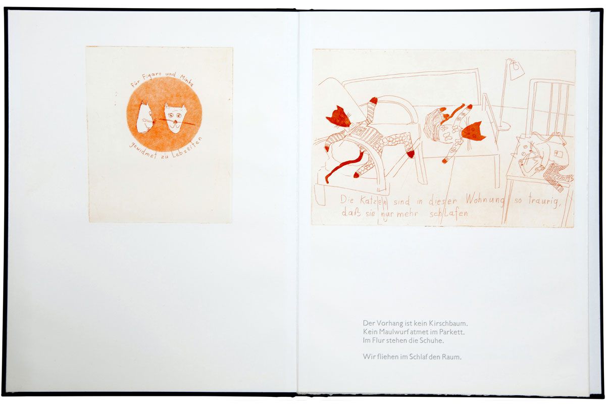 Zein Wigger hat auf diese Lithografie mit Zeichnungen reagiert, die im weiteren als Siebdruck über die Litographie gelegt wurden.