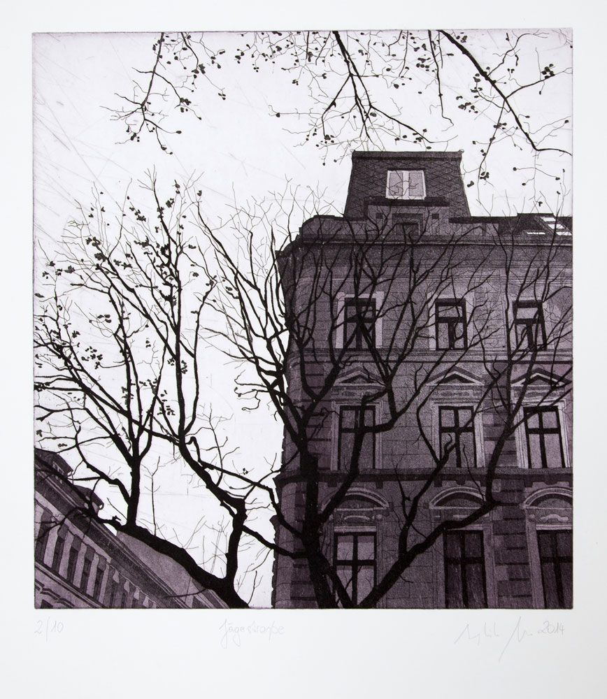 Linien erhalten, muss die Platte oft über mehrere Stunden geätzt werden. Nach dem Ätzen wird die Platte gespült und mit Terpentin gereinigt. Nun wird die Platte druckfertig gemacht. Dafür wird die erwärmte Platte mit Kupferdruckfarbe eingefärbt, gewalzt oder tamponiert und anschließend solange ausgewischt, bis nur mehr in den geätzten Stellen Farbe steht. Anschließend wird die Radierung in einer Kupferdruckpresse auf gefeuchtetes Büttenpapier gedruckt.